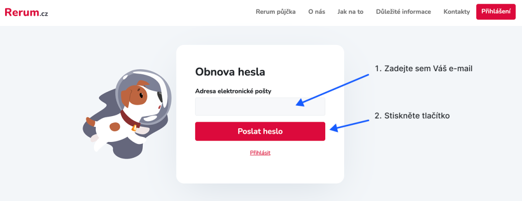 - Klikněte na tlačítko „Poslat heslo“.