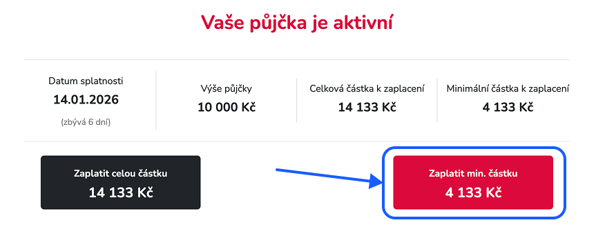 Splatnost půjčky si můžete prodloužit úhradou minimální částky k zaplacení, která odpovídá smluvnímu úroku za celé období čerpání jistiny.