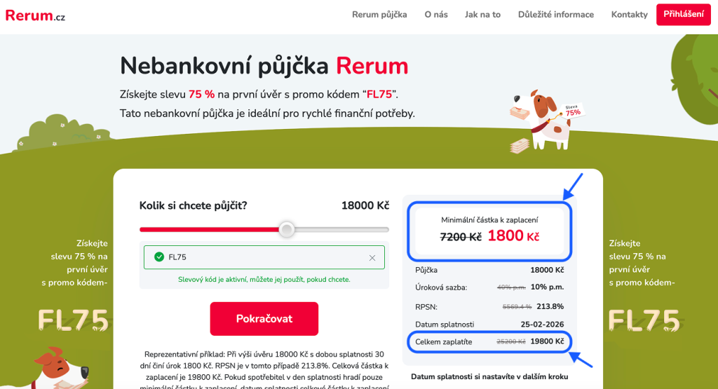 Nabízíme půjčky od 1 000 Kč do 30 000 Kč. Výši minimální platby (úroku) i celkovou částku k úhradě najdete na našich stránkách, kde se nachází kalkulátor půjčky, po schválení žádosti i ve své klientské zóně.